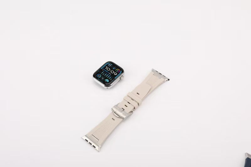 The secure stainless steel buckle ensures a reliable fit while adding a rugged, industrial aesthetic. Easy to adjust and lock, keeping your Apple Watch safe during high-movement activities.