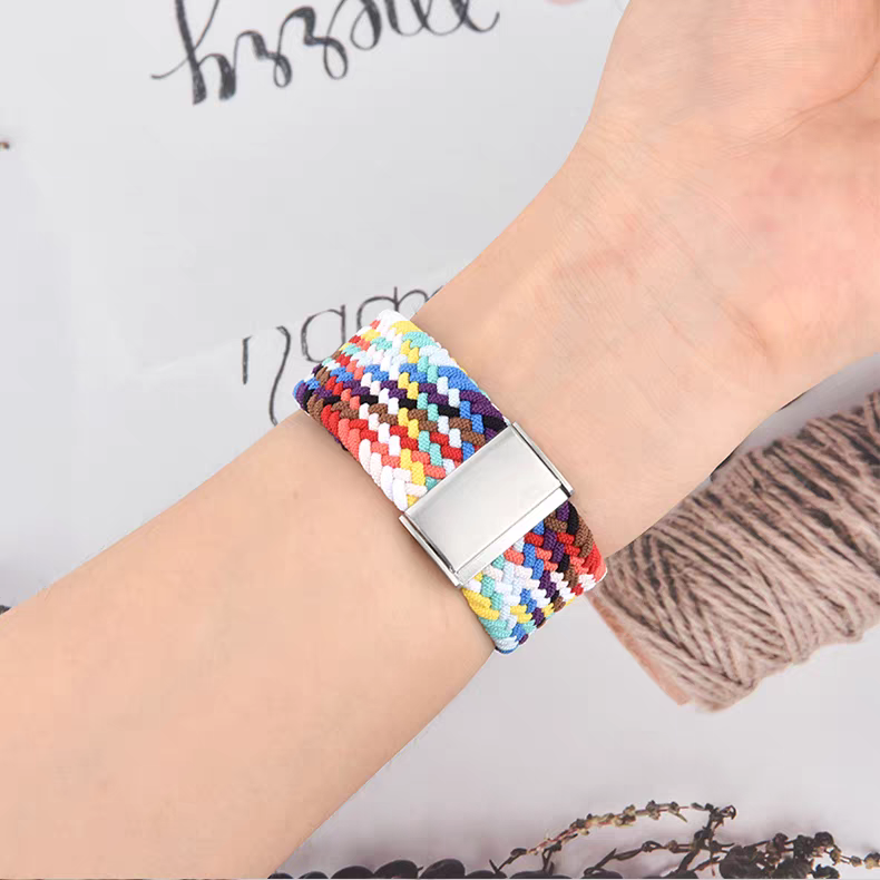 Crafted from durable woven nylon, this band features a vibrant braided design that’s lightweight, breathable, and soft on the skin for all-day wear.