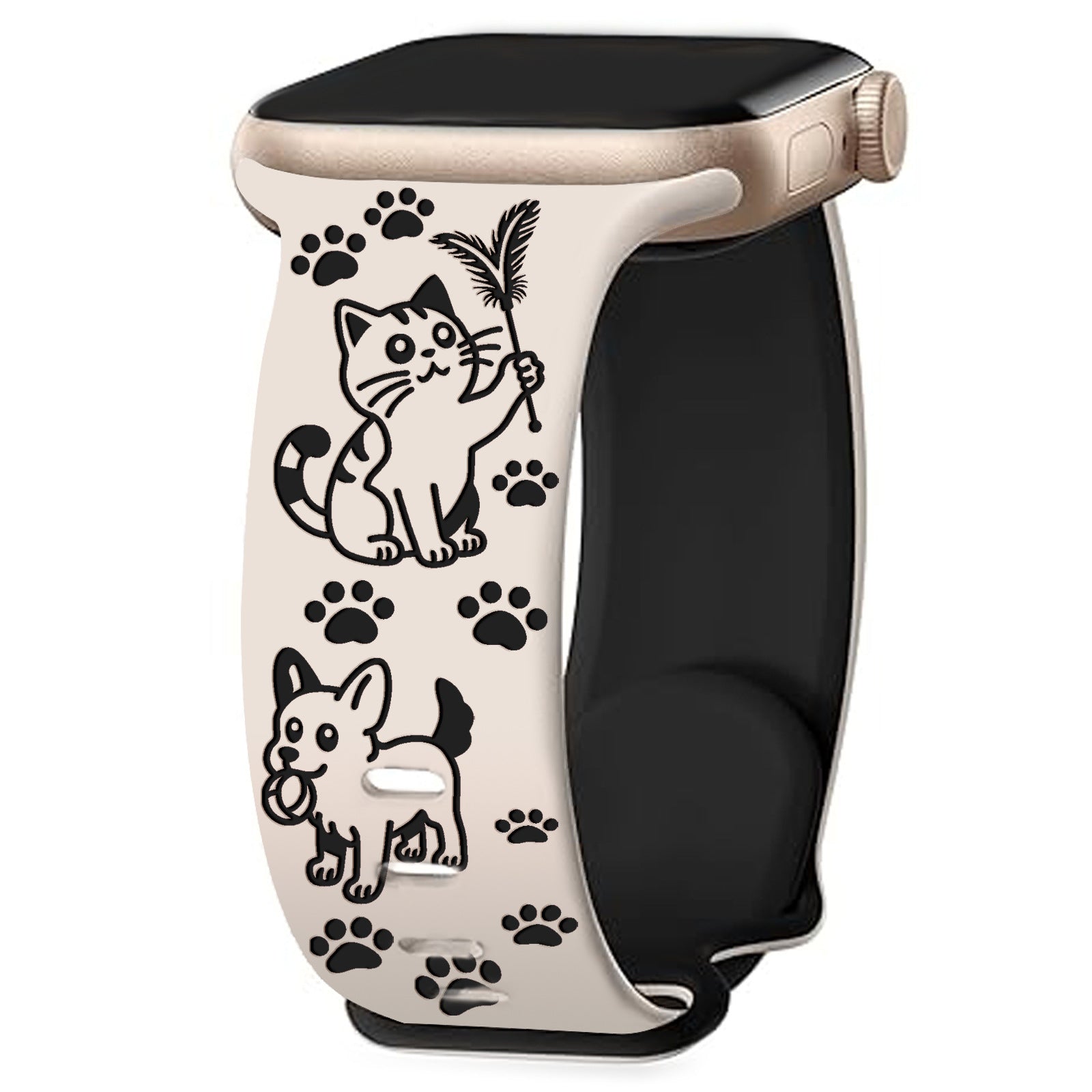 Cute Cat & Dog Engraved Silicone Band for Apple Watch