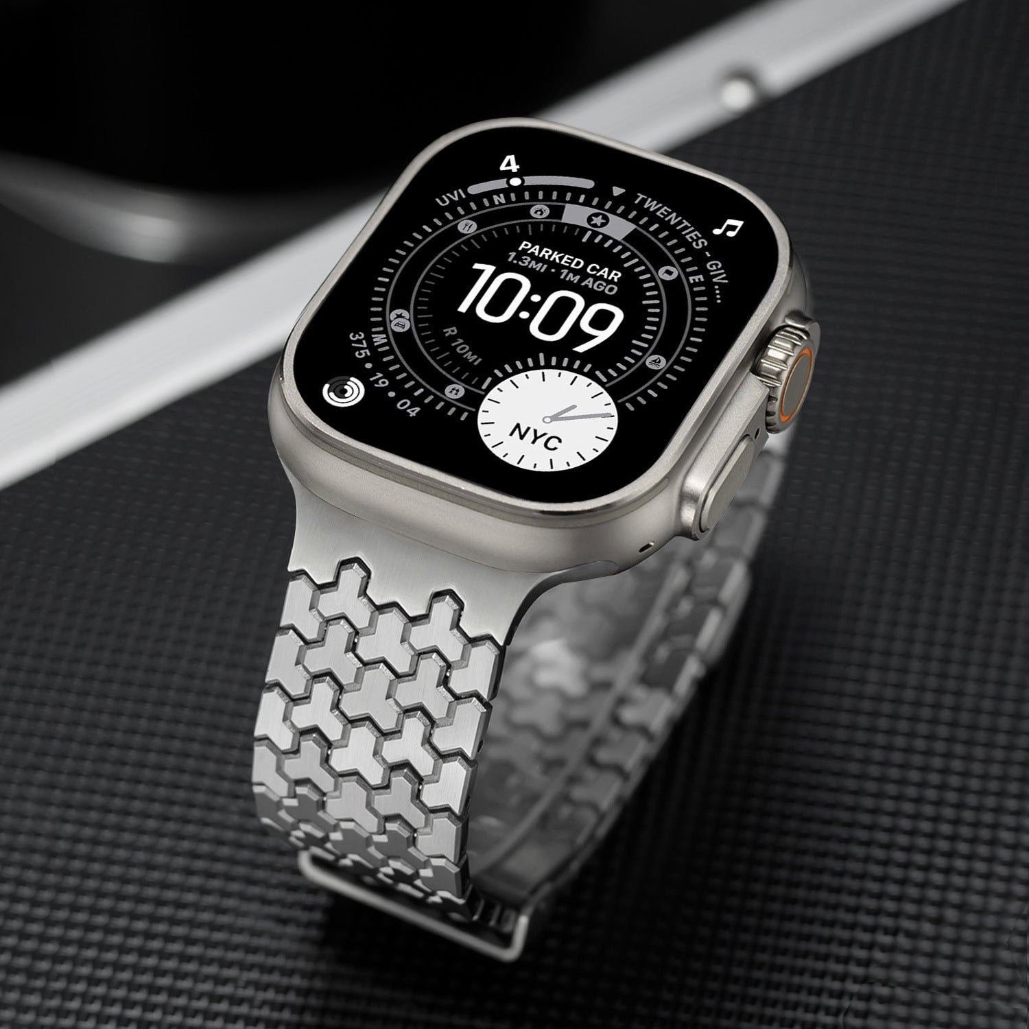 Crafted from premium stainless steel with a sleek Y-pattern finish, this magnetic band blends modern style with effortless everyday comfort. The dual-magnetic clasp snaps securely into place for quick, one-handed fastening, while the solid metal build adds a refined, premium touch to your watch.