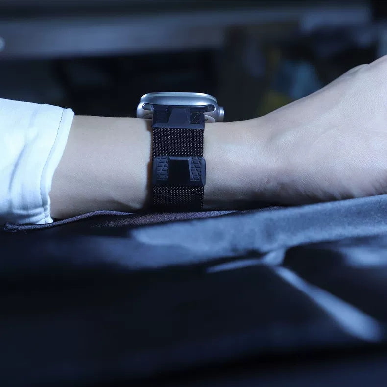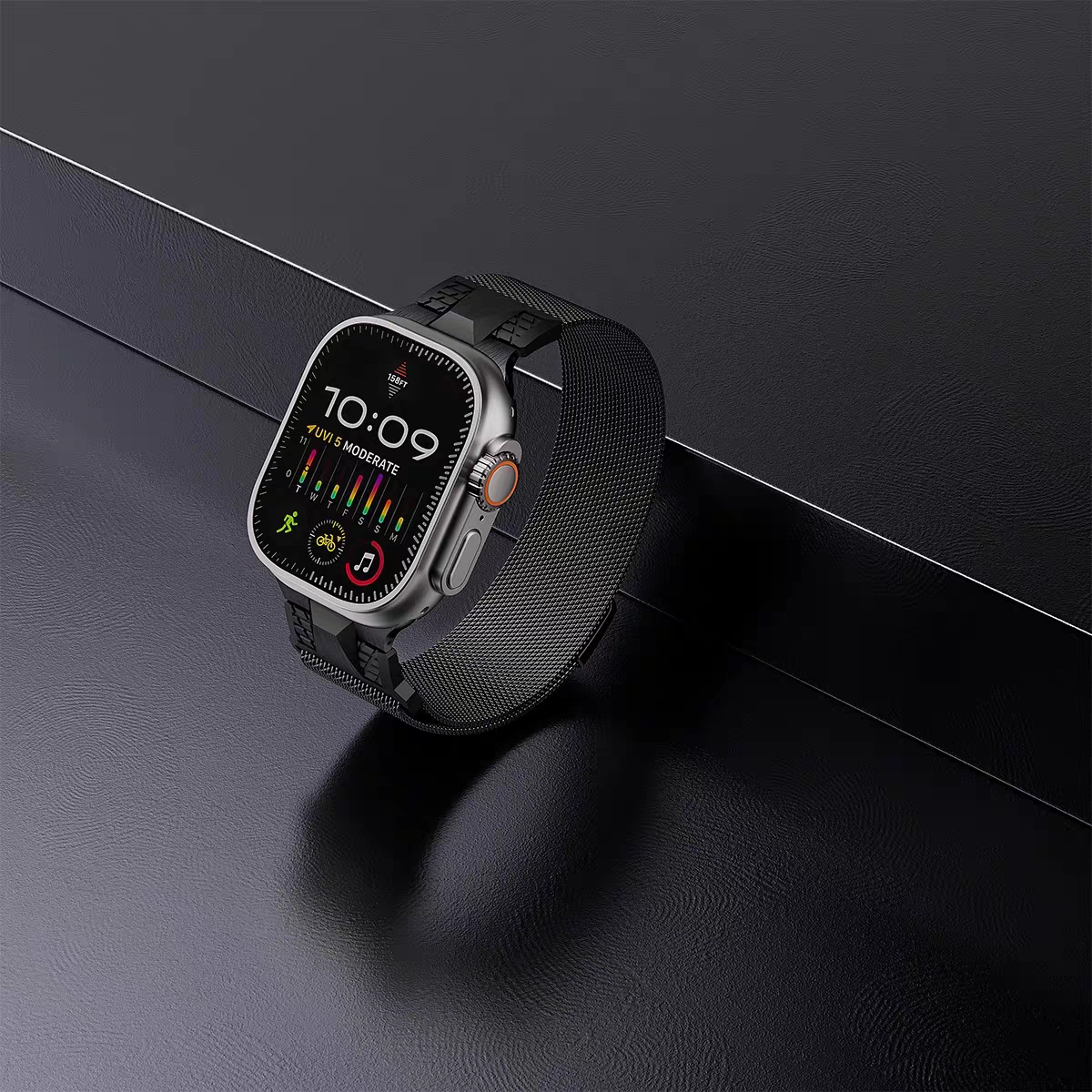 Crafted from premium stainless steel mesh, this band features a modern Milanese loop style that hugs your wrist comfortably while adding a refined, high-end look to your Apple Watch.