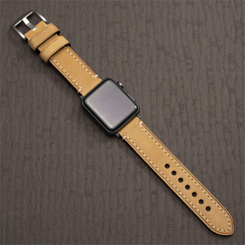 Finished with clean stitching and a polished edge, this band enhances your watch with a warm, vintage-inspired aesthetic.