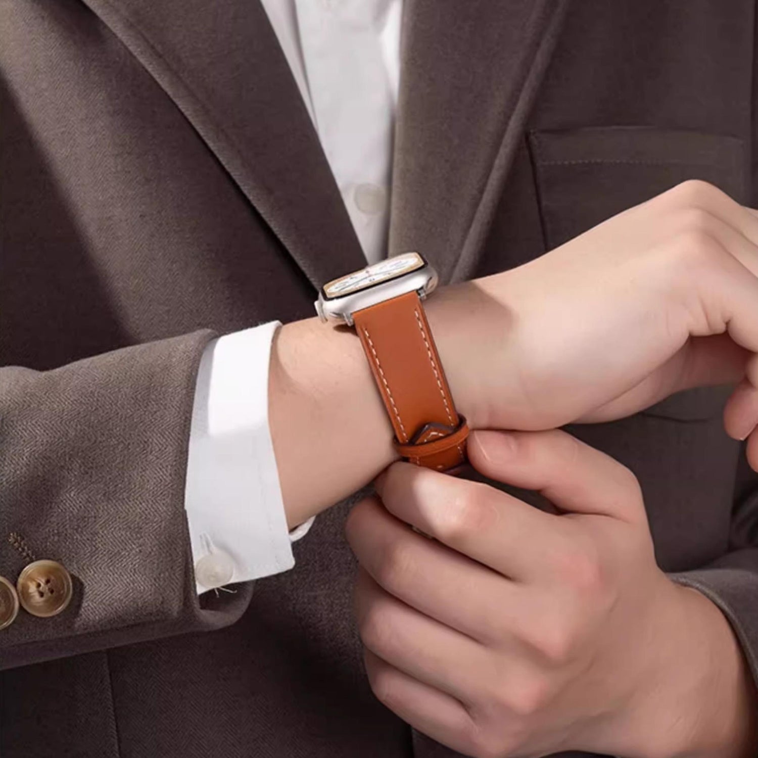 Premium Leather Butterfly Clasp Band for Apple Watch
