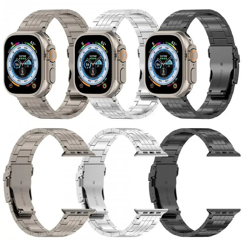Titanium Metal Link Band for Apple Watch with Butterfly Clasp