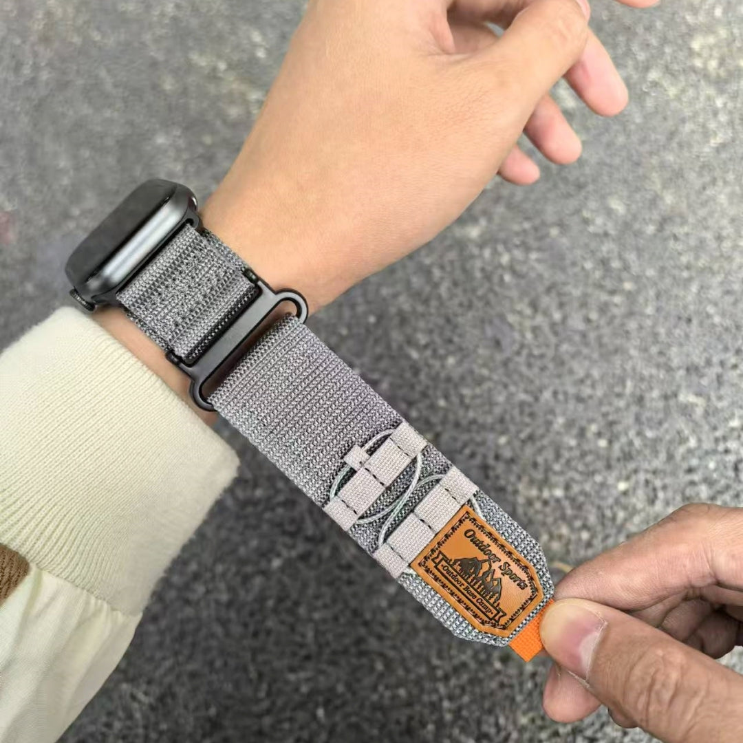 The Outdoor Nylon Woven Band for Apple Watch is designed for active lifestyles. Made from durable nylon weaving, it is lightweight, breathable, and comfortable for all-day wear. The hook-and-loop (Velcro) closure allows quick adjustment and a secure fit during workouts and outdoor activities, while the 25g lightweight design ensures flexibility without added bulk—ideal for sports and everyday use.